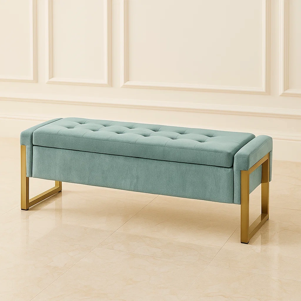 Bancs de chambre 140 x 43 x 44 cm vert sauge polyester et métal avec coffre