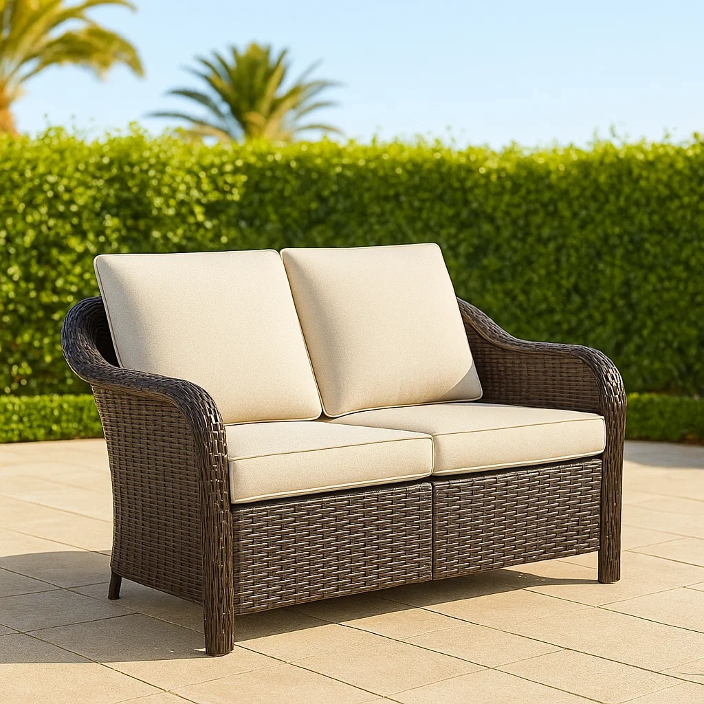 Banquette d’extérieur 140 x 82 x 80 cm beige/marron acier/rotin PE