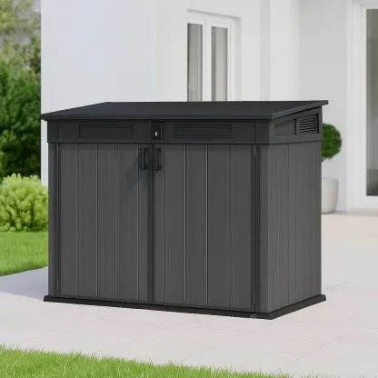 Abri de jardin 190 x 110 x 132 cm gris/noir résine avec plancher et couvercle hydraulique