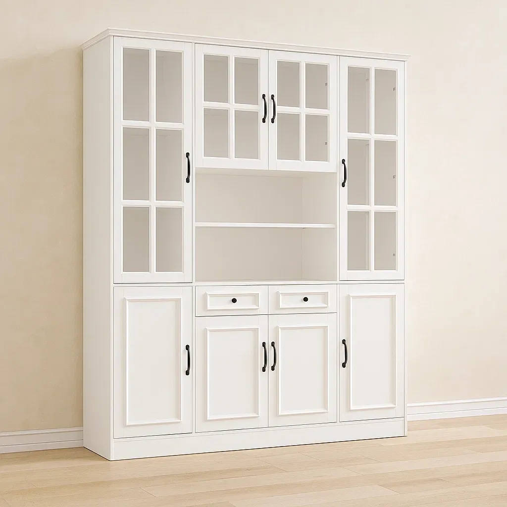 Armoires de rangement cuisine 160 x 40 x 200 cm blanc MDF et verre trempé