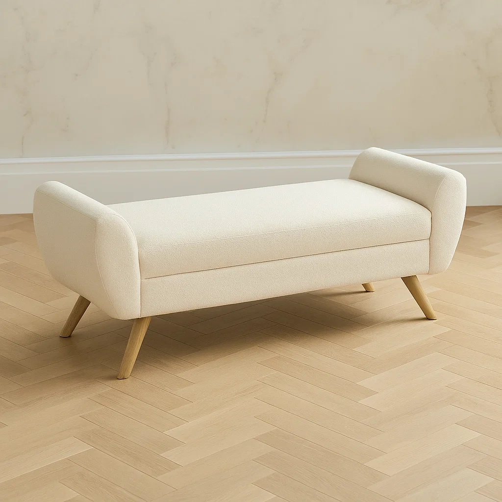 Bancs d’entrée 152 x 45 x 53 cm blanc bois et polyester avec accoudoirs