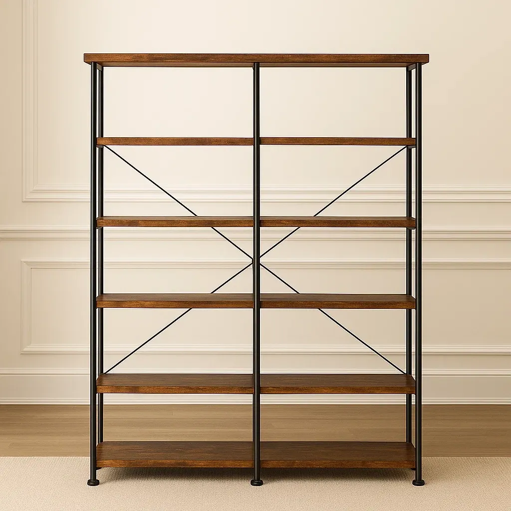 Bibliothèques 152.4 x 36.2 x 160 cm brun/noir bois et métal avec 5 étagères
