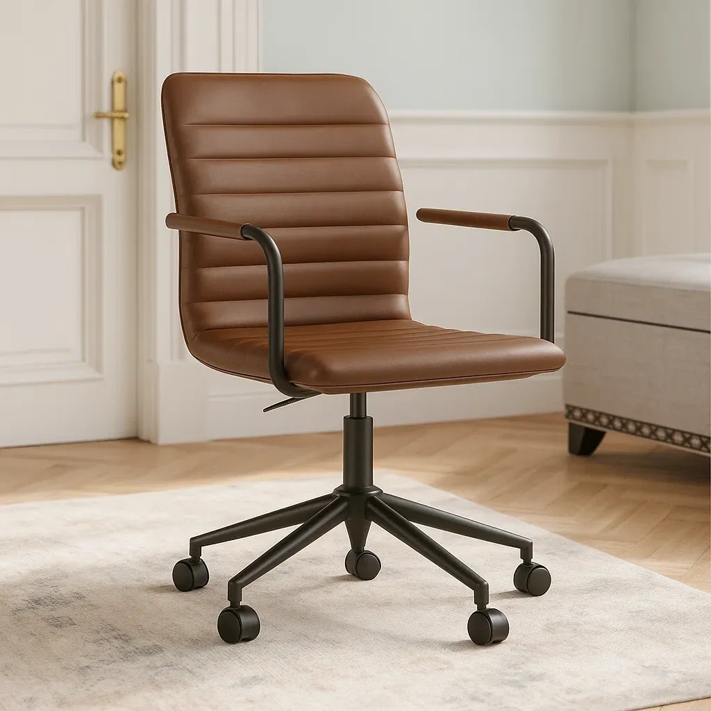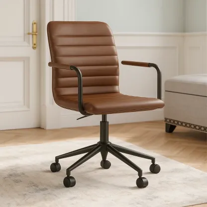Chaises de bureau 65 x 65 x 92 cm marron/noir cuir synthétique et métal moderne avec accoudoirs