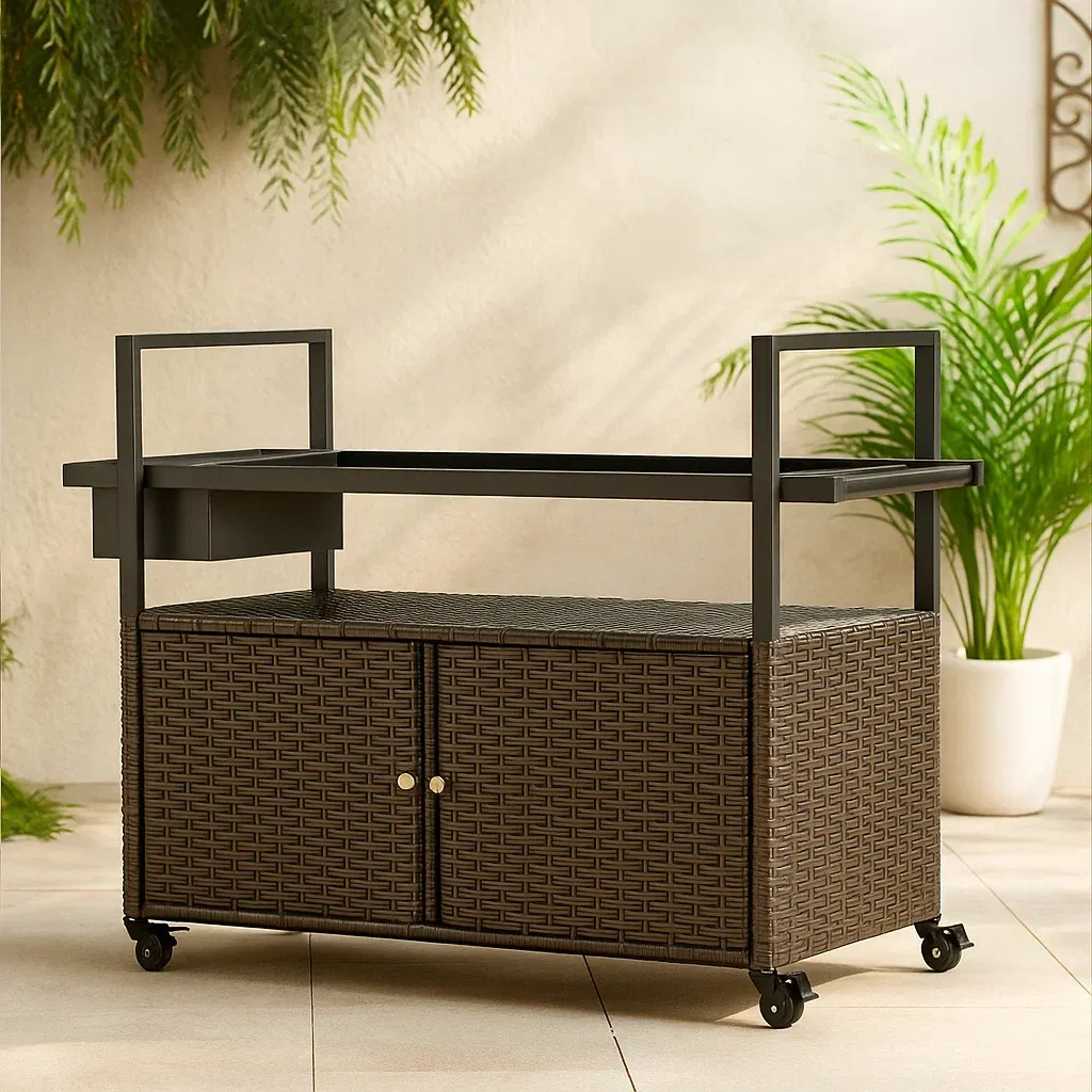 Chariots de bar d’extérieur 125 x 52 x 90 cm marron acier/rotin PE