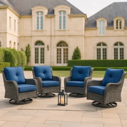 Fauteuils de jardin pivotants 4 pièces 70 x 70 x 90 cm gris/bleu métal/résine avec coussins et base rotative