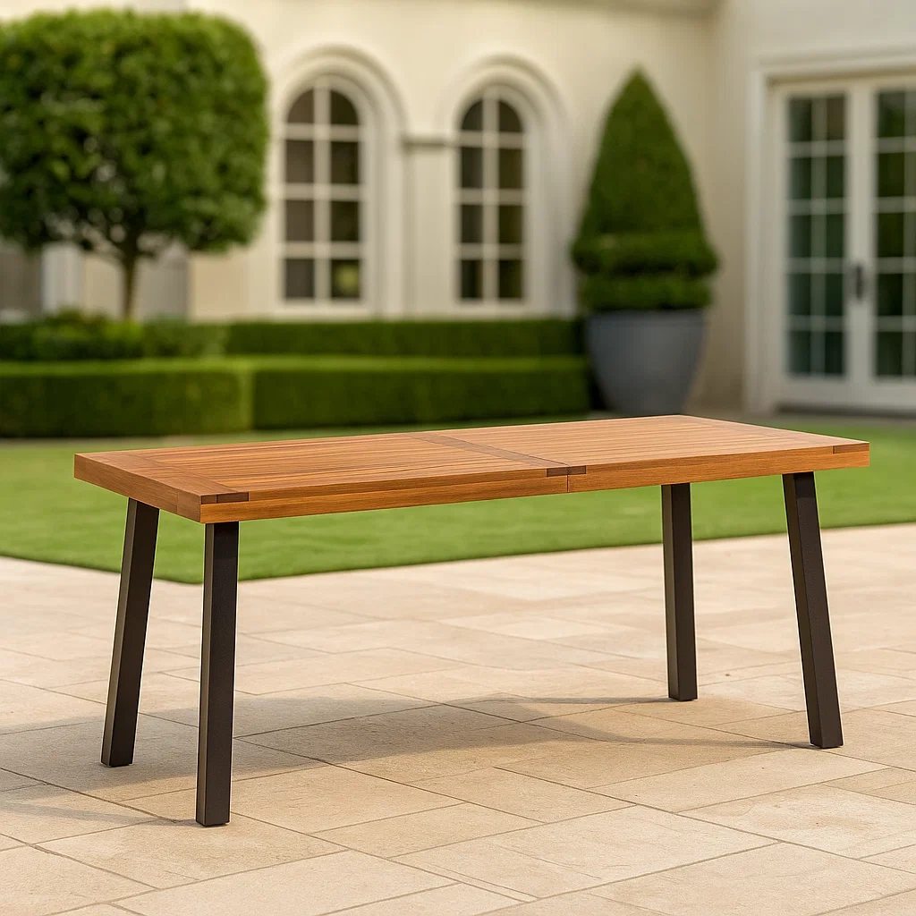 Table à manger de jardin 157.5 x 82.5 x 75.2 cm teck naturel/noir bois d’acacia/métal