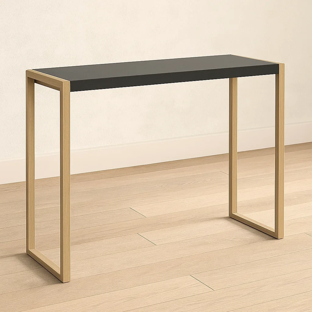 Table bistro d'extérieur rectangulaire 140 x 50 x 101.5 cm noir/bois clair métal